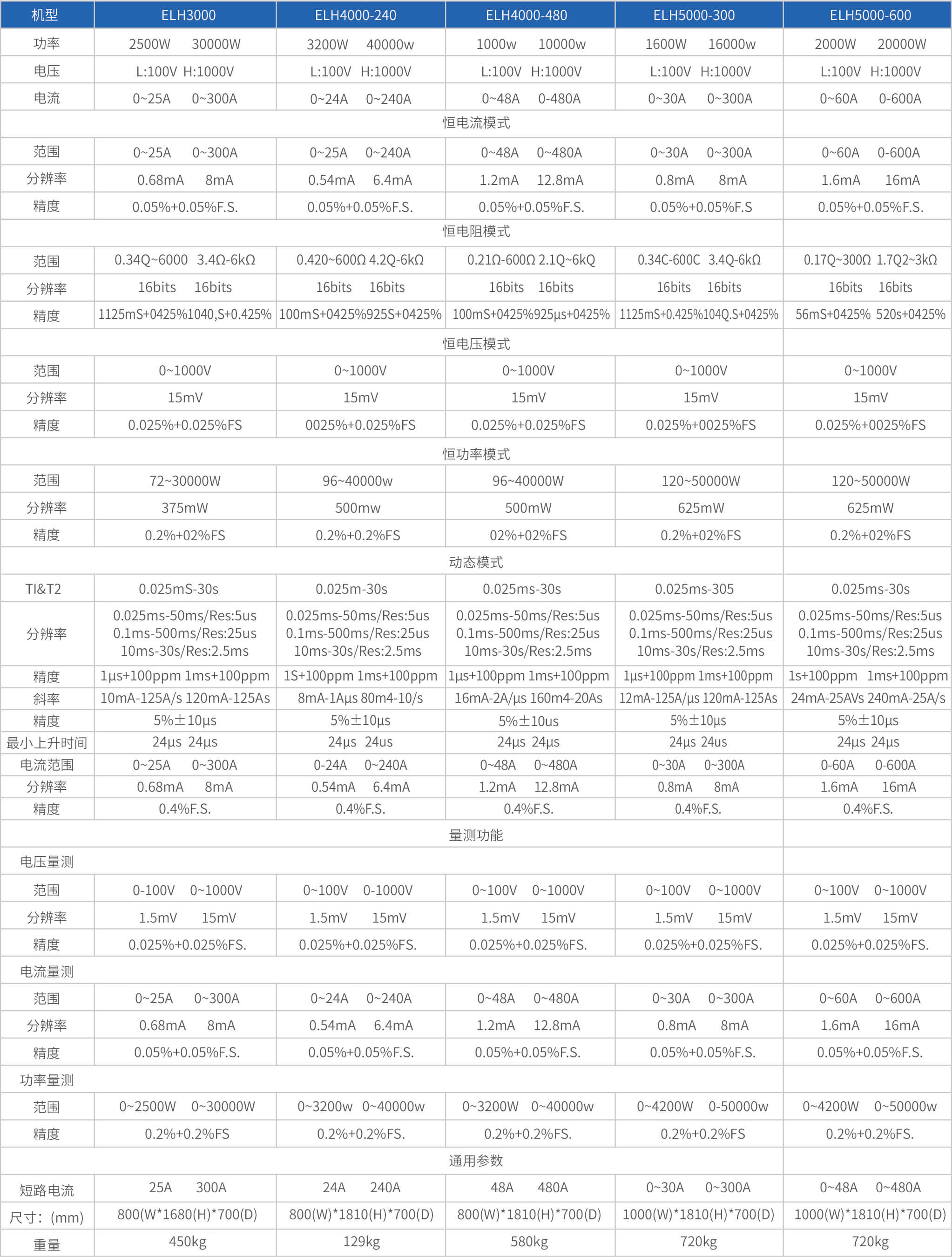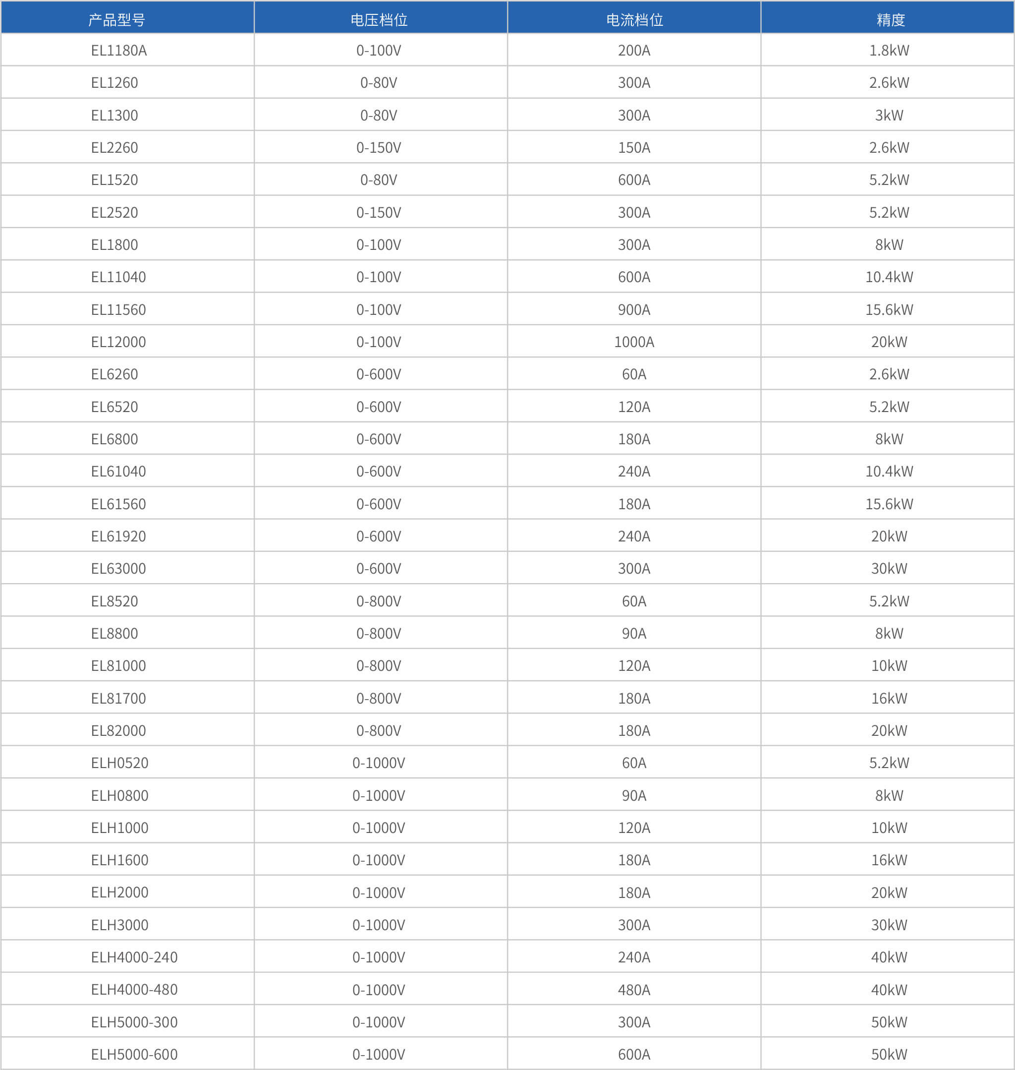 • Voltage: 0-1000V; maximum current: 1000A; power: 1.8kW-50kW