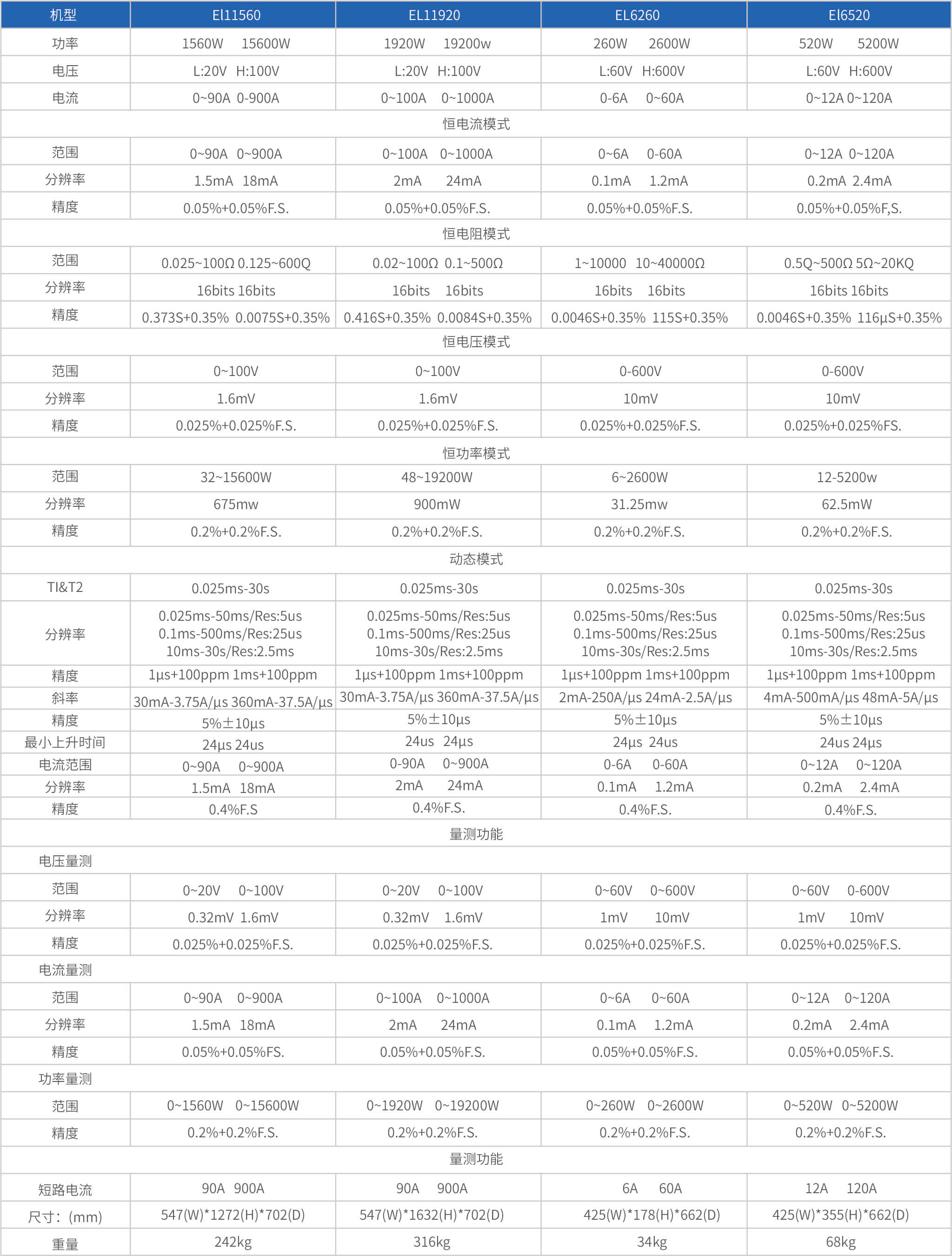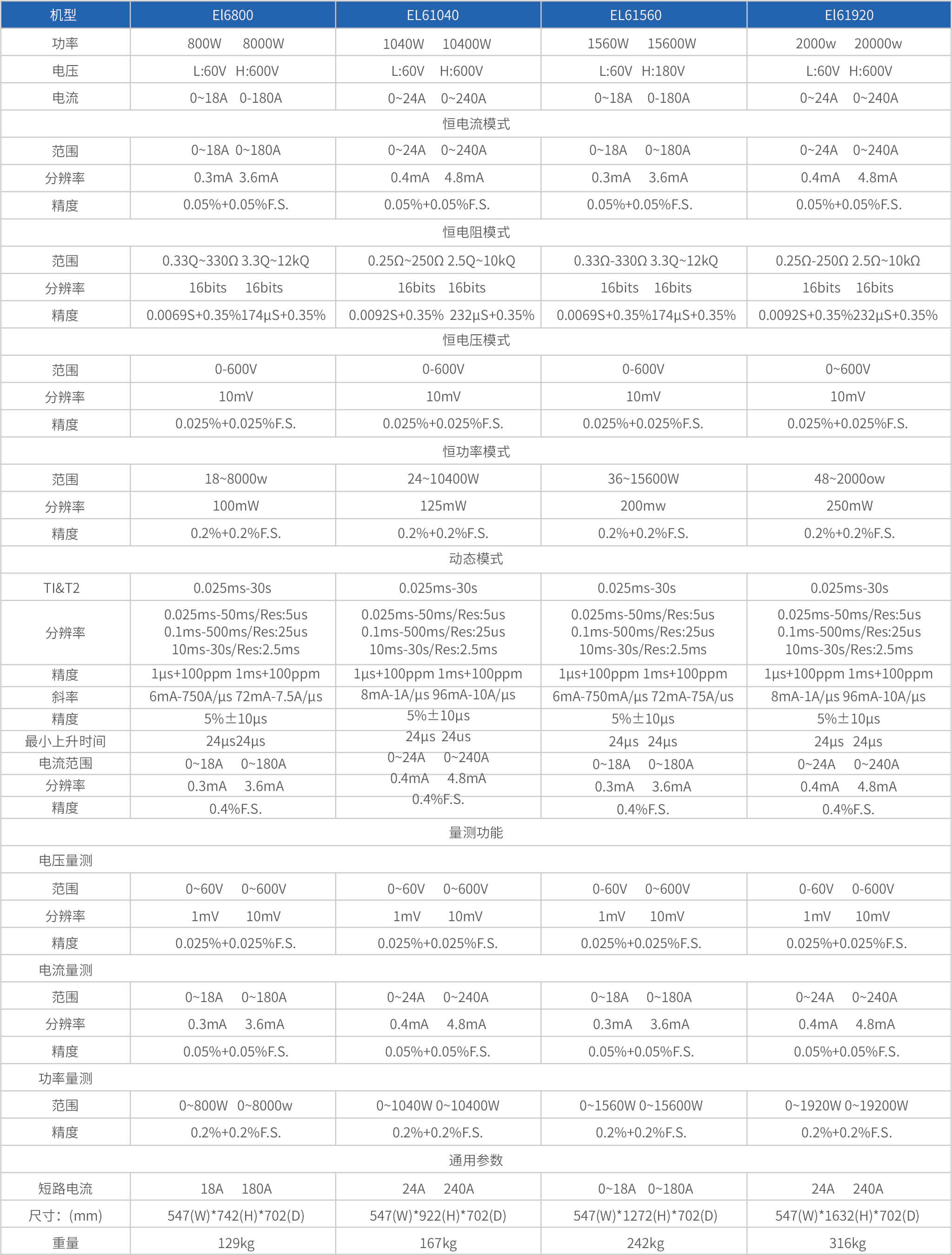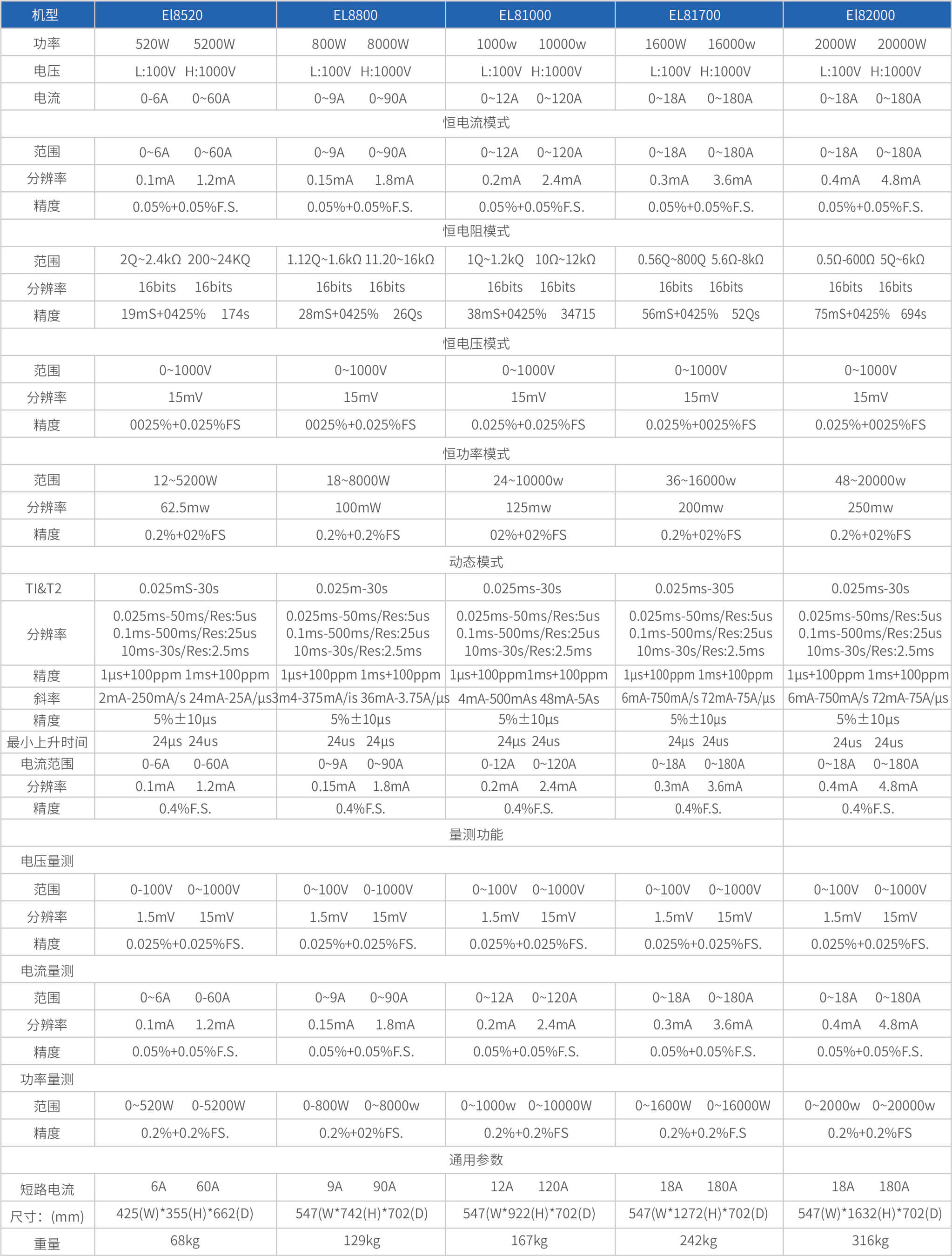 The high-power series electronic load is a high-precision instrument designed to simulate the load changes of low-voltage and high-power products. This series can simulate high-speed dynamic load changes with a frequency variation of up to 20kHz. This series can be applied to load simulation for high-power switching power supplies, power supply equipment, power battery packs, and electronic component testing.