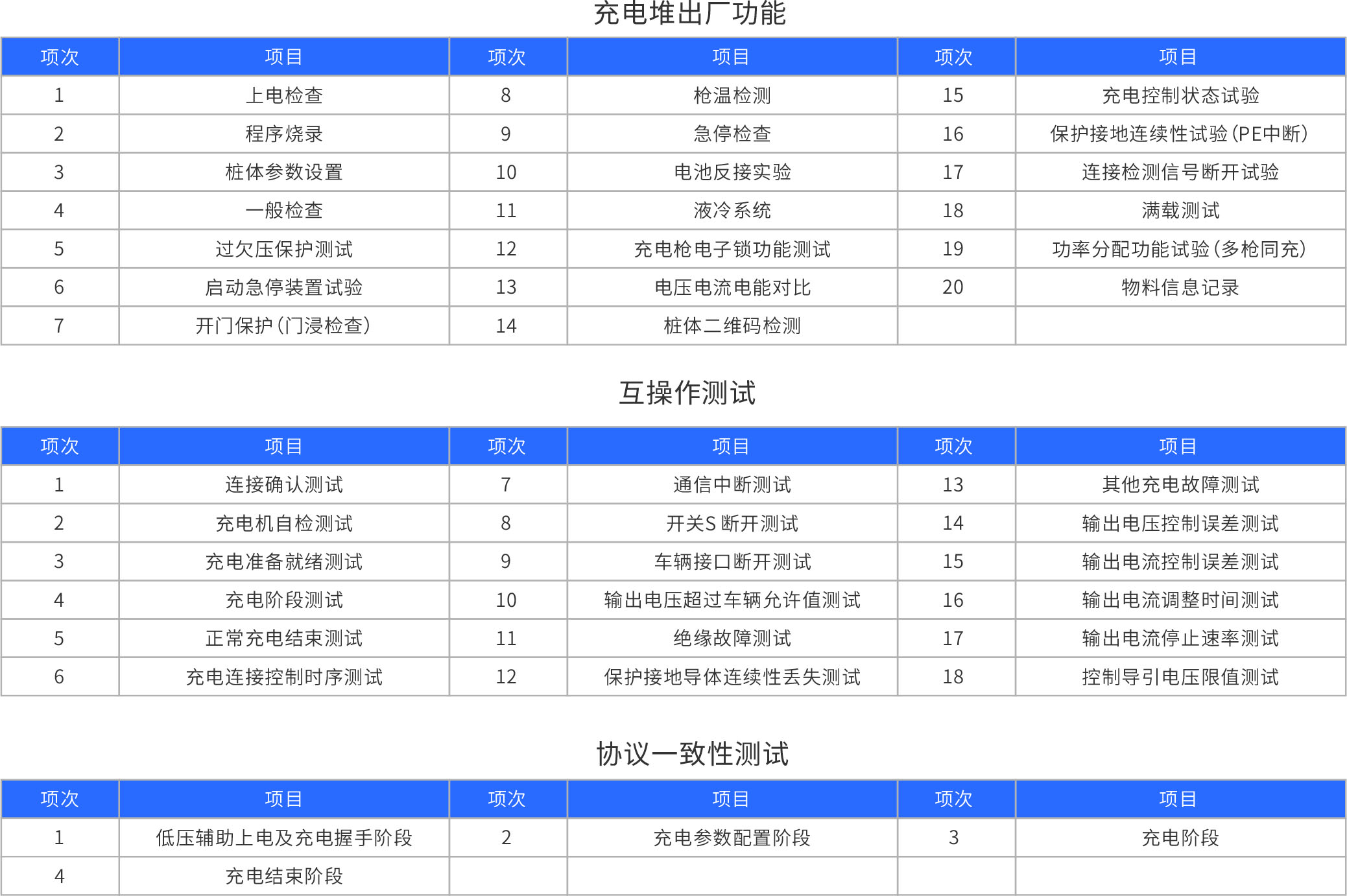 • The system supports charging piles, integrated piles, pile charging power cabinets, and independent gun cabinets for independent testing