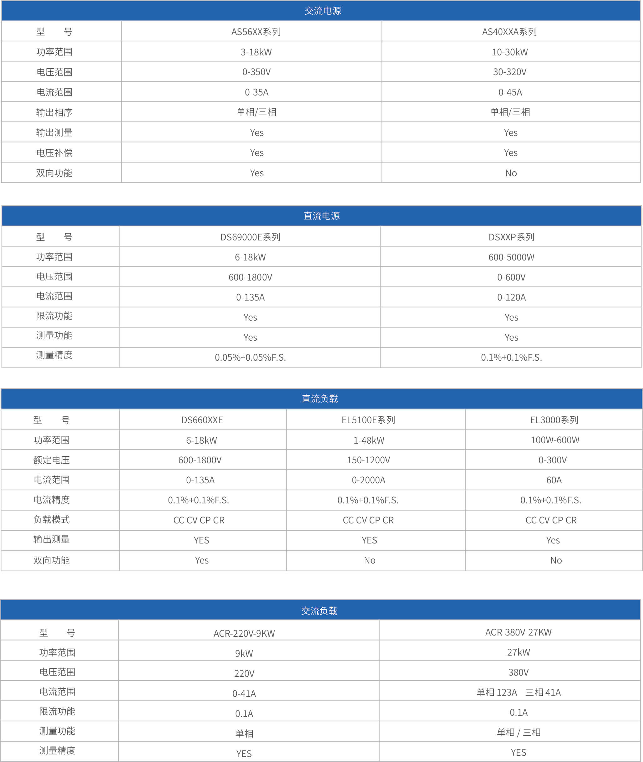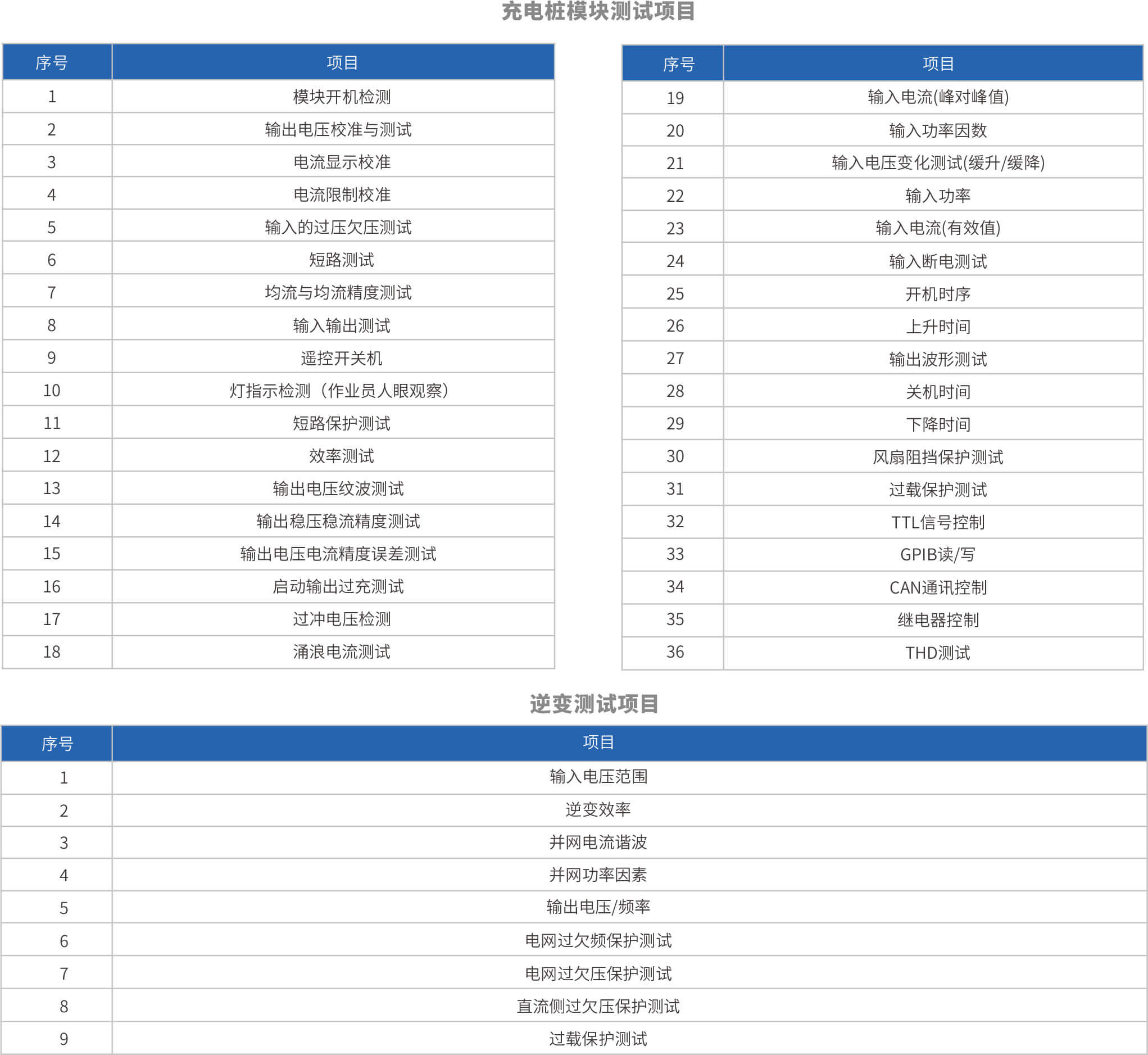 • Function coverage: input characteristic testing, output characteristic testing, control accuracy testing, voltage and current accuracy calibration, protection function testing, communication function testing, and extended communication function testing;
