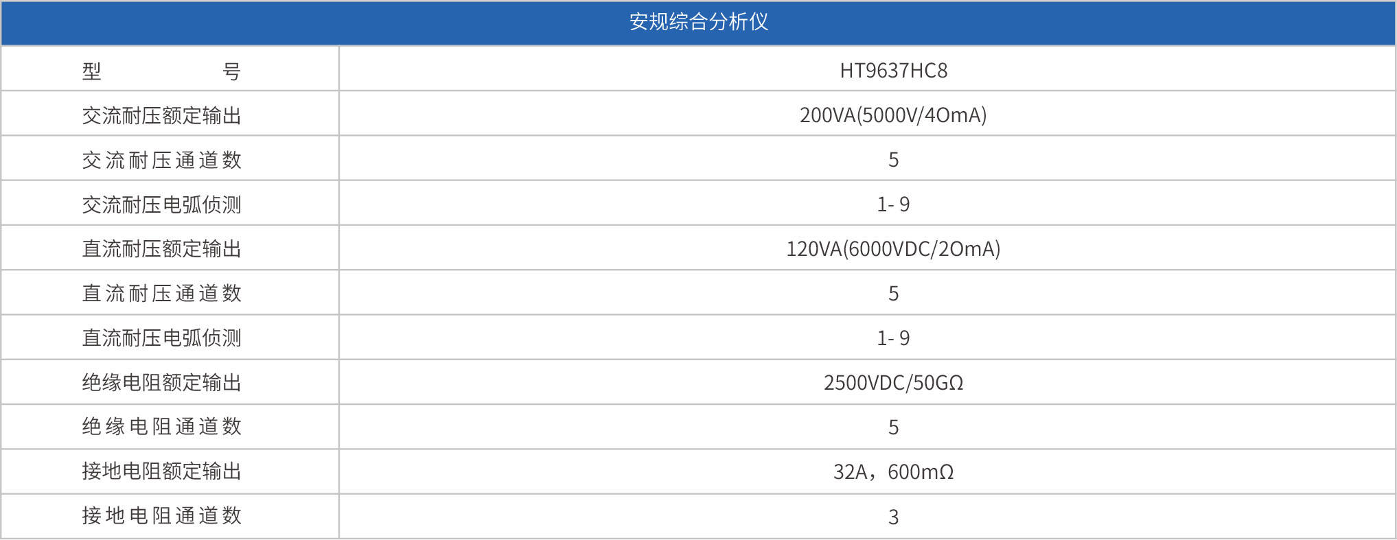 • Function coverage: insulation resistance test, AC/DC withstand voltage test, grounding test;