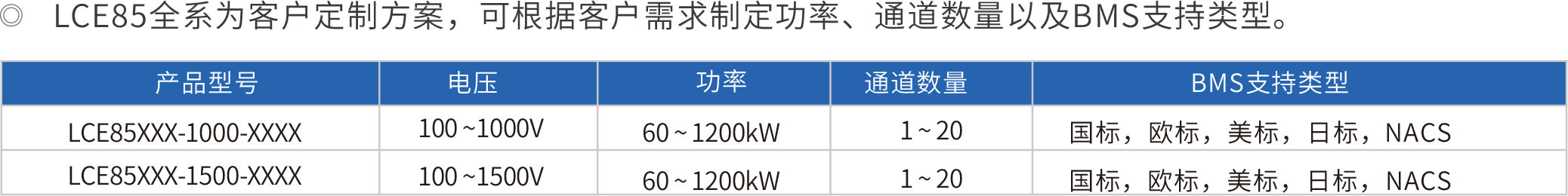 • Each BMS channel can support standards such as national standard GBT2011&GBT2015, Japanese standard CHAdeMOV1.2&V2.0, American standard CCS1 DC, European standard CCS2 DC, ChaoJi, NACS, etc