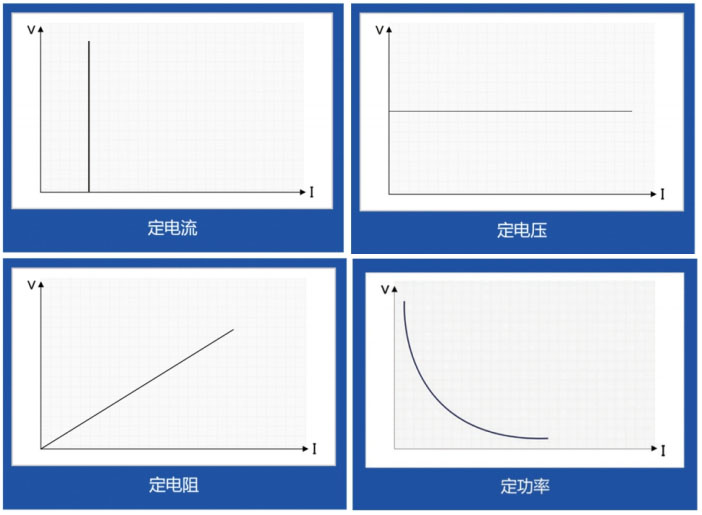 • Four static loading modes are provided: constant current mode (CC) and constant resistance mode (CR) are suitable for traditional switch mode power supply load simulation, constant voltage mode (CV) is suitable for battery charger and constant current output power supply load simulation, and constant power mode (CP) can be used for power battery pack and energy storage device load simulation.