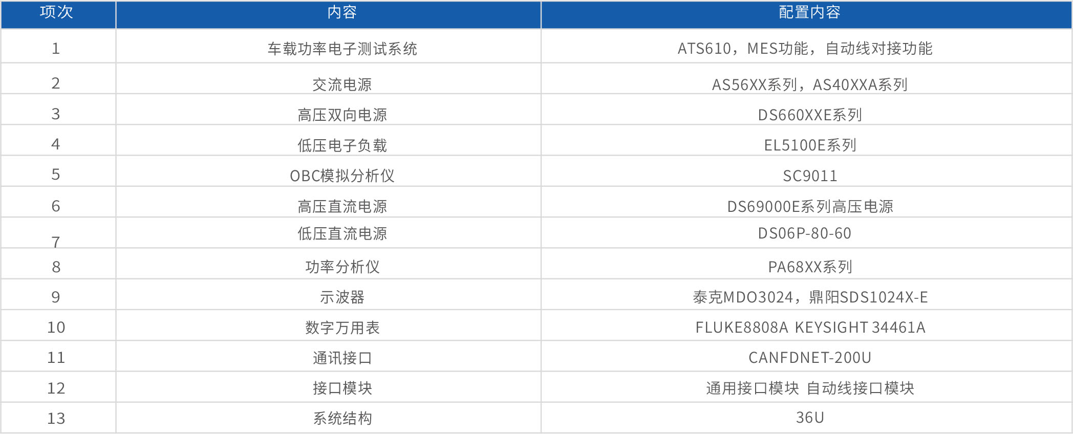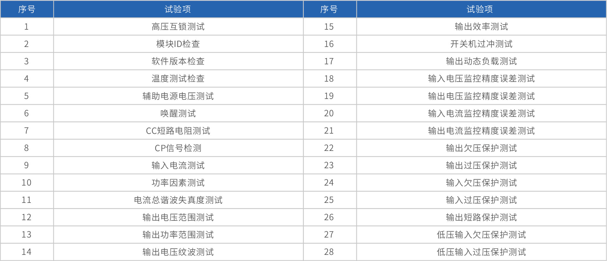 • Built in standardized on-board charger and DCDCTest Project, professional testing system